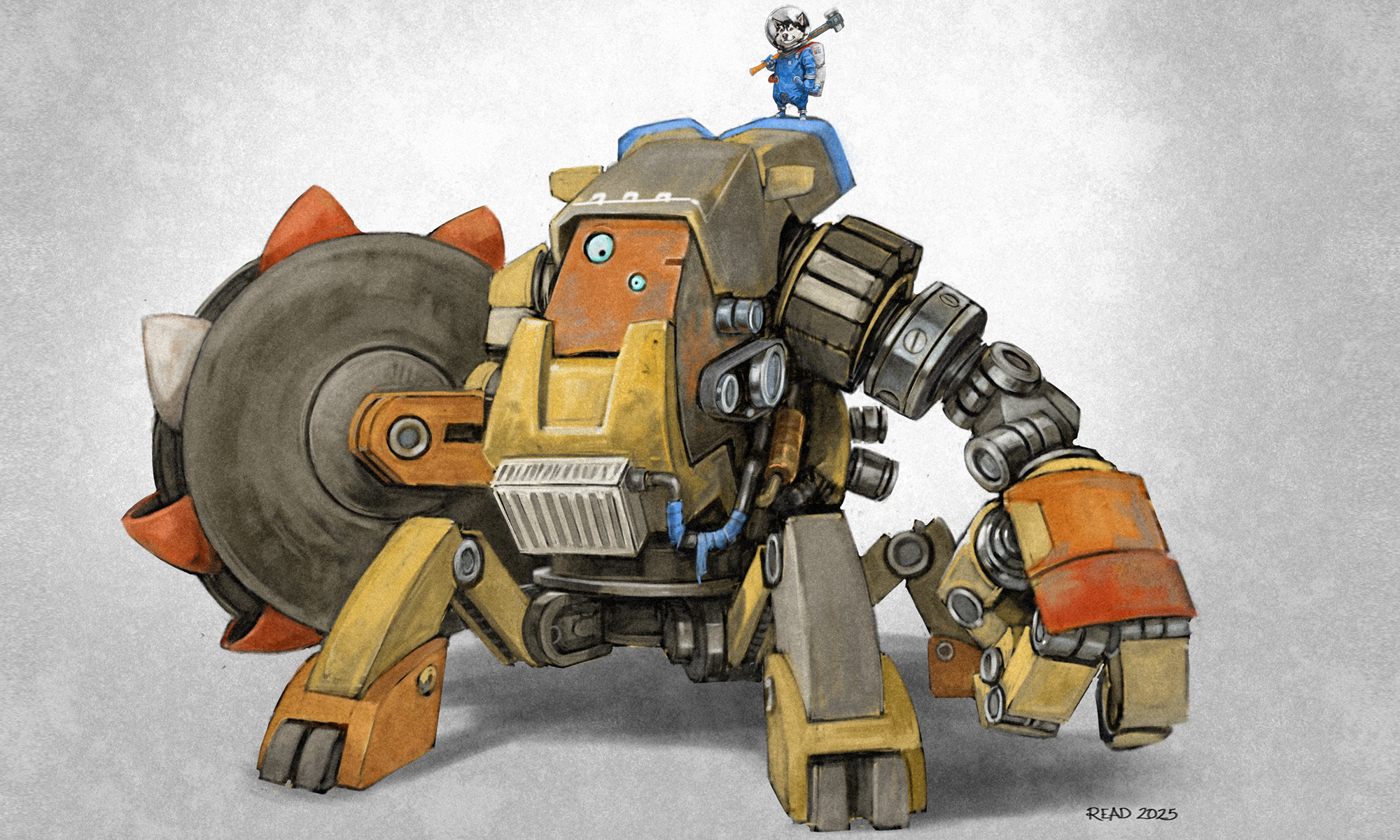 Von der Interplanetaren Upcycling Corporation (I·U·C) habt ihr die Order bekommen, den Schrott einzusammeln, daraus Roboter zu bauen und den Zwergplaneten damit zu erforschen. Dafür sucht ihr zunächst mit Tempo und Fingerspitzengefühl in der Weite des Weltraums – der gar nicht so „weit“ ist, wie ihr gleich feststellen werdet – nach verwertbaren Teilen. Aus diesen upcycelt ihr dann euren Roboter, klettert daran Ebene um Ebene empor und montiert schließlich die Steuereinheit: den AI-Controller. Eurem tapsigen Roboter, den ihr liebevoll Palooka nennt (was übersetzt soviel wie „Trampel“ heißt), verleiht ihr damit „Analoge Intelligenz“. Wer zuerst oben ankommt, darf den etwas verbeulten, dafür aber gutmütigen Roboter vor Freude auf Gong „herumtrampeln“ lassen. Nur zu Forschungszwecken – ist doch logisch!