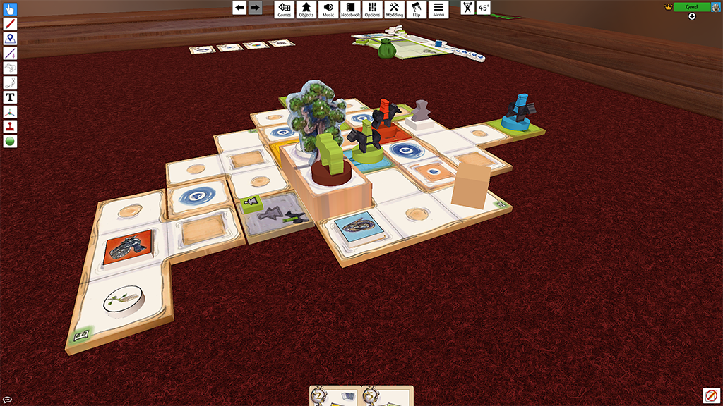 Der Prototyp kann online über den Tabletop Simulator (TTS) gespielt werden: hier geht’s zur Version für bis zu 4 Spieler*innen und hier zur Solovariante.
